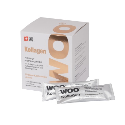 WOO® Kollagen hilft bei einer normalen Funktion der Blutgefässe, Haut, Knochen und Knorpelfunktion